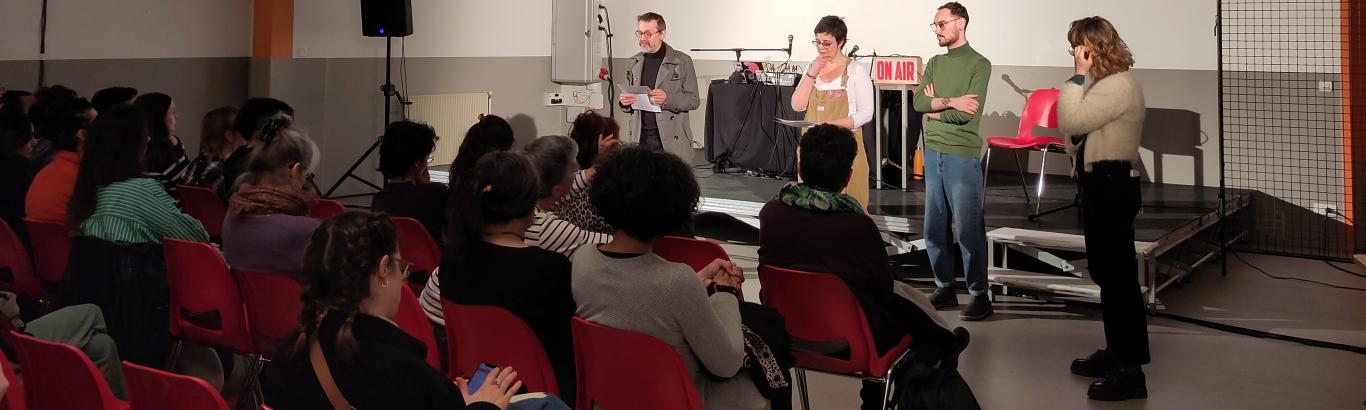 La Compagnie de théâtre L'Escarpée a proposé le spectacle théâtre et radiophonique "60 ans d'écoute", dont le synopsis est '